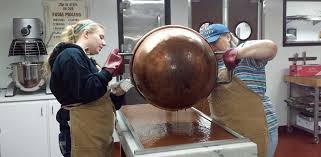 We visited Wisconsin Dells every summer when I was a kid. Few things stand out quite as clearly as the souvenir stores and chocolatier shops. I loved watching the apron clad women making fudge on the massive round table. One woman would slowly pour the liquefied chocolate onto the round marble slap while others used spatulas to form the rapidly cooling mass. This was in an old time candy shop with large open air windows and tourists piling in gawking curiously at the spectacle unfolding. Whenever the heated bowl was ready to dump another sweet mix of sugar, cream and chocolate, the onlookers swarmed the boutique shop like pigeons to seed. The thrill of another sugar high drew many as the best fudge is always the freshest cut, at least it seemed. The joy of watching a sticky mass take shape in the hands of a skilled craftsman was also part of the fun.